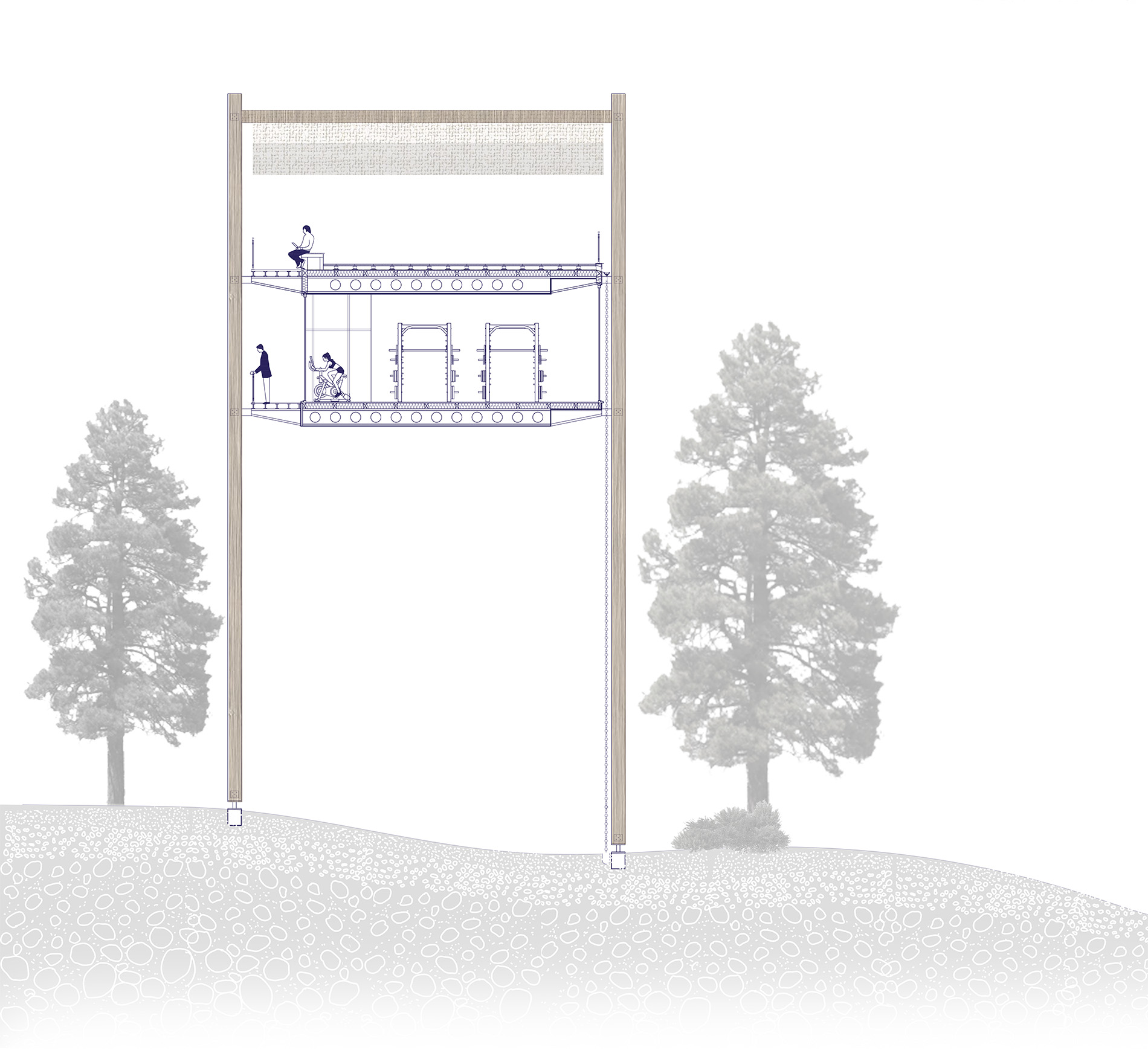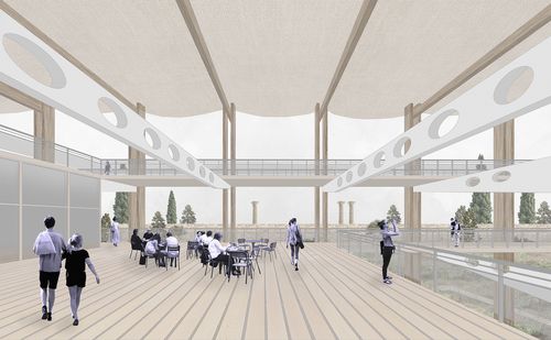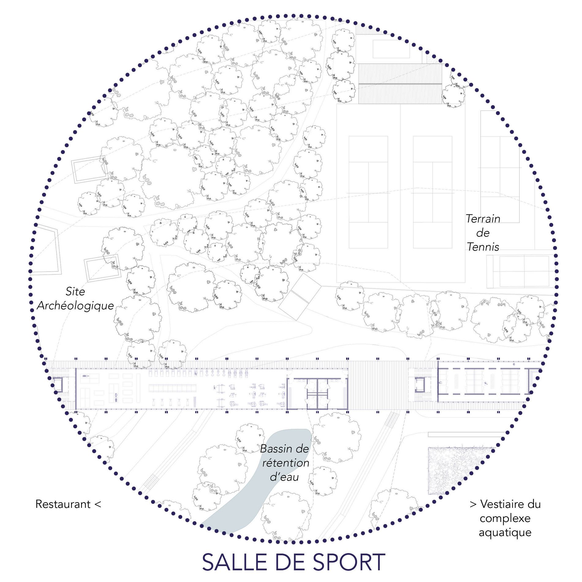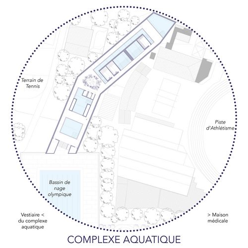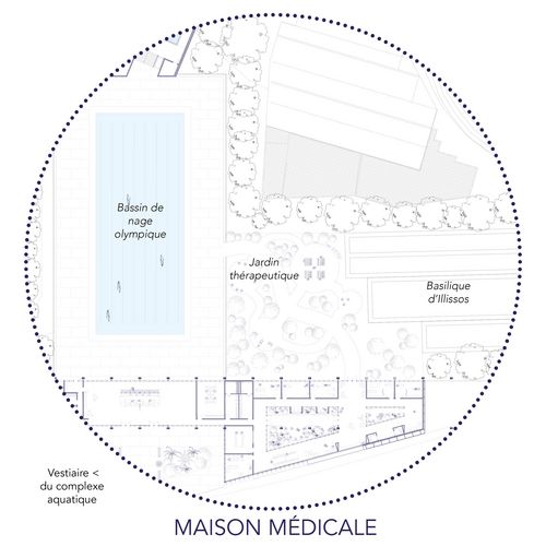 Au cœur d’Athènes, la piscine du Zappéion, autrefois fleuron de la natation athénienne, est aujourd’hui laissée à l’abandon. Alors que les fonctions liées au soin, à la détente et au bien-être se concentrent davantage en périphérie, la ville marquée par son patrimoine archéologique se fragmente et perd son lien avec ses habitants. Dans ce contexte, ce projet propose de redonner vie à cet espace historique en le transformant en une maison médicale et sportive. Connectée à la ville par une passerelle habitée qui relie deux rues passantes et surplombe les sites archéologiques, la nouvelle piscine devient un lieu polyvalent. Elle offre des espaces de soin pour les patients, un espace convivial pour les accompagnants, des installations pour la rééducation aquatique des sportifs, et un lieu de détente et de contemplation pour les Athéniens.