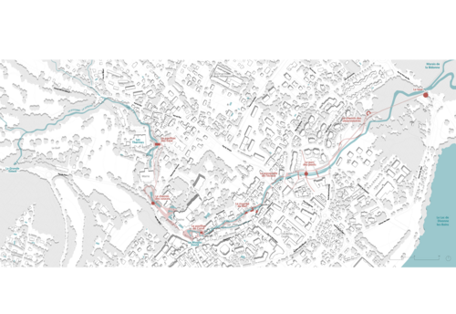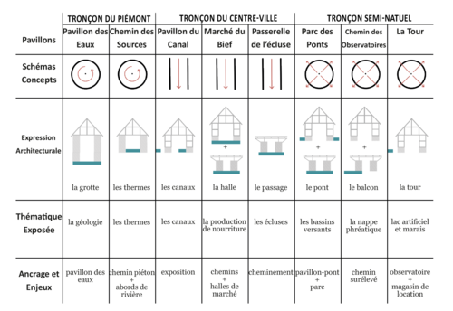 Le parcours est ponctué de pavillons invitant à redécouvrir l’histoire de Divonne, à questionner la place de l’eau aujourd’hui dans la ville, et à comprendre ses enjeux environnementaux.