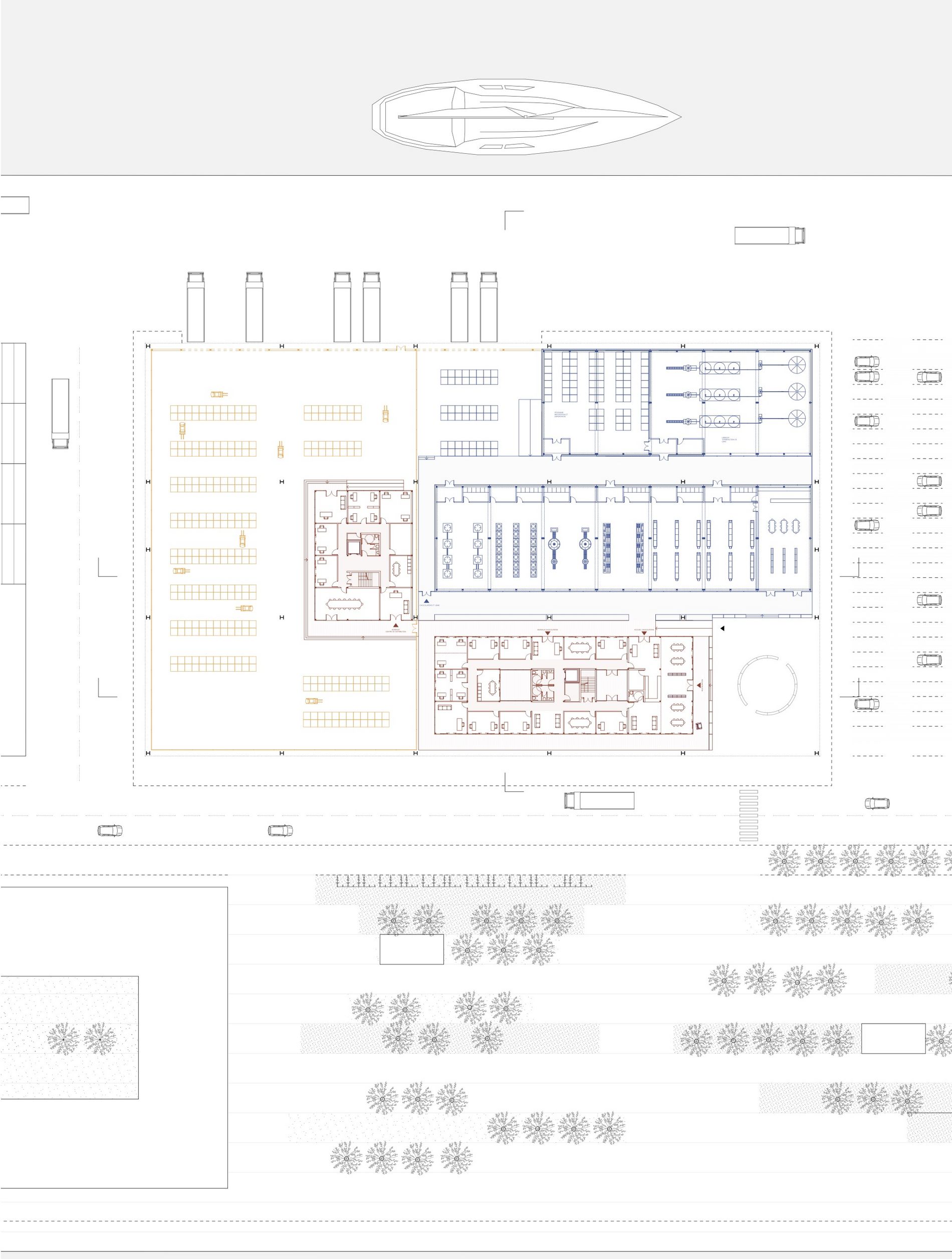 Le projet porte sur le Môle 2 à Dunkerque, plateforme industrielle stratégique, entre ville et port, mais aujourd’hui fragmentée et imperméabilisée. Alors que la programmation envisagée est surtout économique (bureaux, chocolaterie, torréfaction, hôtel d’activités), ce choix risque d’en limiter la vitalité. Le projet propose deux leviers : d’abord, repenser le sol comme infrastructure vivante et poreuse, grâce à un réseau hydraulique et végétal structurant des espaces publics différenciés et continus. Ensuite, introduire une mixité programmatique (logements temporaires, hôtel, commerces, services) pour compléter les activités productives et logistiques. Trois typologies bâties – bâtiment à cour, halle de formation, grande structure en sheds modulables accueillant production, bureaux et distribution – structurent le site. Cette stratégie vise à faire du Môle 2 un morceau de ville actif et habité, réconciliant ville productive et ville habitée.