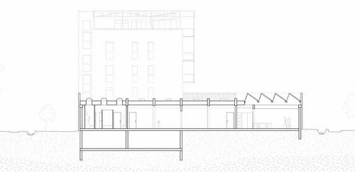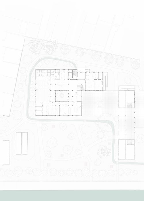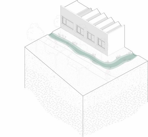 Les abords sont pensés comme une continuité de la promenade le long du canal grâce à la noue qui recueille l’humidité et des espaces paysagers adaptés aux besoins des visiteurs et des passants. Le bâtiment possède des espaces de rencontre, détente, consultation et des logements s’étendant jusqu’au toit-terrasse.