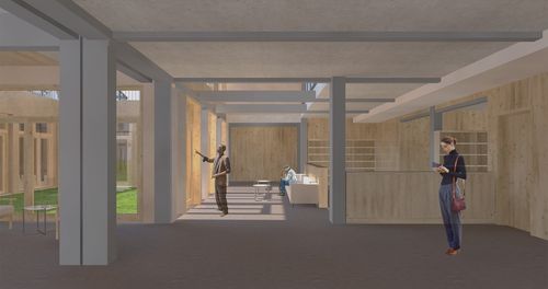 Sur le site de l’Hôpital Jean-Verdier, le projet concerne la réhabilitation d’un bâtiment afin d’intégrer un centre d’accueil et de soin pour les personnes atteintes de cancer. La revalorisation de ce lieu passe par la transformation des sols, la végétalisation et l’ouverture sur le canal.