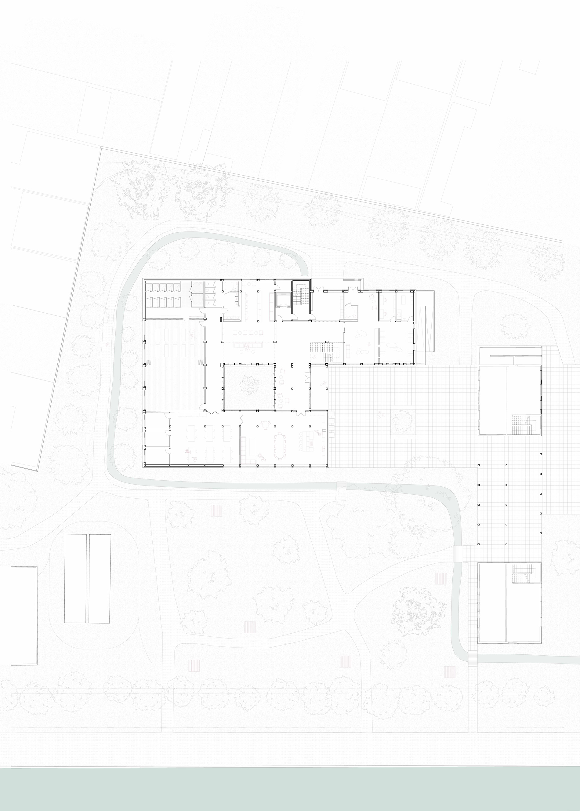 Les abords sont pensés comme une continuité de la promenade le long du canal grâce à la noue qui recueille l’humidité et des espaces paysagers adaptés aux besoins des visiteurs et des passants. Le bâtiment possède des espaces de rencontre, détente, consultation et des logements s’étendant jusqu’au toit-terrasse.