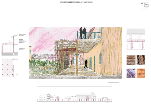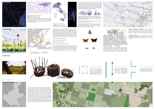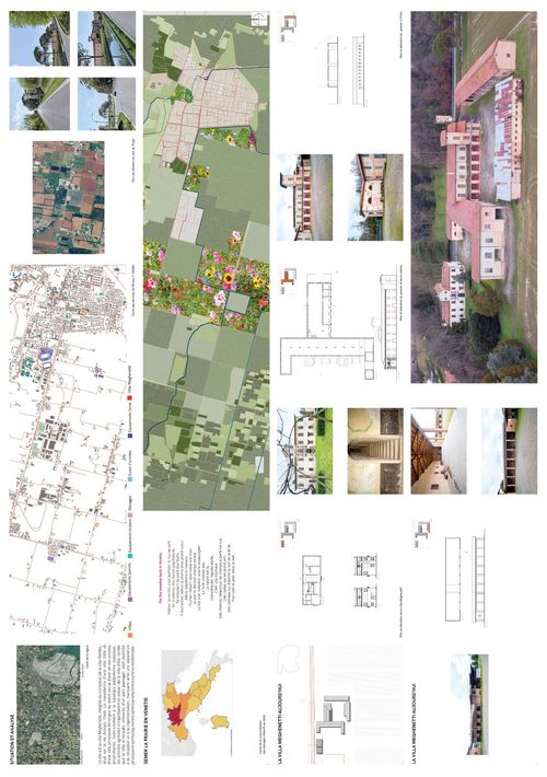 Le projet s’ancre en Vénétie, région du nord de l’Italie façonnée par les fleuves et l’ingénierie hydraulique. Trois enjeux écologiques sont mis en avant : la massette de Laxmann, plante des zones humides fragilisée par l’artificialisation ; le grand cuivré, papillon pollinisateur menacé par l’agriculture intensive ; et le risque majeur d’une agriculture industrielle qui fragmente le paysage et dégrade les écosystèmes. Le projet se concentre sur la Villa Meghenetti et son ancien ensemble agricole, dont il préserve la structure tout en créant de nouvelles connexions spatiales et visuelles. Parmi les interventions : un impluvium contemplatif, des claustras en briques filtrant lumière et regards, une treille paysagée reliant promenades, terrasses et canopées, ainsi que la réouverture d’un canal pour réintroduire fraîcheur et symbolique de l’eau. Enfin, des matériaux biosourcés et recyclés (coton, pulpe de blé, béton aux coquillages) renforcent l’identité locale. L’ensemble propose une réinterprétation durable et contemporaine de la villa vénitienne productive.