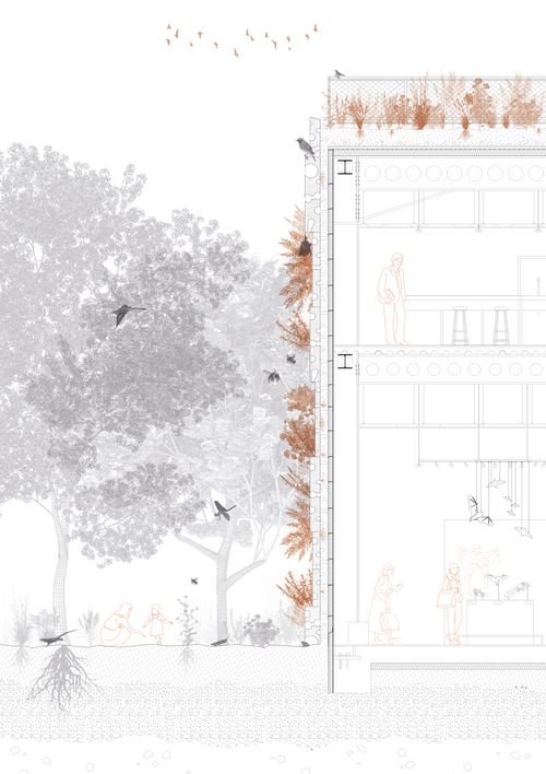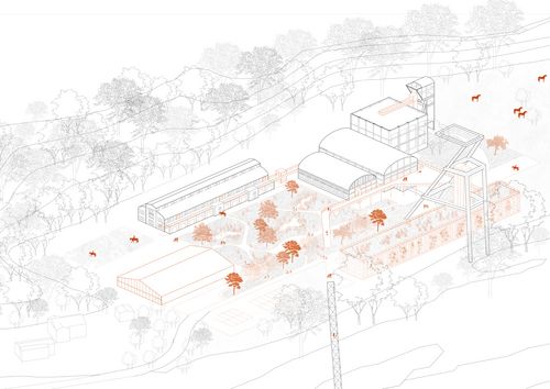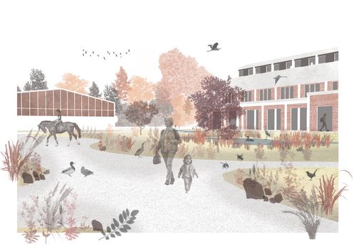 La nature renaît dans le délaissé, transformant les friches en réservoirs de vie et lieux d’expérimentation pour penser la ville de demain. Cette dynamique a guidé notre projet à Freyming-Merlebach, ville moyenne marquée par son passé minier. Au sein de la Comcom, elle conserve un rôle structurant malgré le déclin démographique et économique lié à la désindustrialisation. Entre forêts, prairies et zones humides, ce territoire offre un potentiel paysager, écologique et social majeur, mais souffre de ruptures anthropiques. Notre démarche repose sur 3 axes : couture, armature, nature. Elle reconnecte les fragments urbains par des passerelles et des mobilités douces, réhabilite l’héritage minier en ouvrant les sites industriels au grand paysage, et restaure les continuités écologiques par dépollution, renaturation et création d’habitats. Le carreau Cuvelette constitue le cœur battant du projet : il réhabilite ses bâtiments en centre de médiation équestre et ateliers bois partagés, et bâtit un pavillon du vivant, conçu comme un écotone architectural. L’ensemble conjugue mémoire industrielle, sensibilisation, pratiques culturelles et écologiques pour allier architecture et vivant.