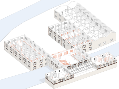 Le projet de fin d’études se concentre sur la réhabilitation de l’ancienne usine Abadie au Theil-sur-Huisne, ancienne fabrique de papier à cigarette implantée en bord de Huisne. L’usine, aujourd’hui en ruine, conserve une mémoire industrielle et un potentiel énergétique grâce à ses turbines hydrauliques. L’intervention repose sur une démarche de déconstruction sélective : découpe des planchers, ouverture de travées et mise en valeur des structures porteuses, afin de révéler la spatialité et la matérialité du bâti. L’objectif n’est pas de figer la ruine mais de la transformer en un lieu vivant, capable d’accueillir ateliers de fabrication du papier, espaces de transmission et parcours pour les visiteurs. L’usine devient ainsi une étape d’un circuit culturel et productif à l’échelle de la vallée, reliant patrimoine, paysage et savoir-faire. Le projet se veut une réponse à la fois respectueuse et contemporaine, conciliant mémoire, économie locale et création.