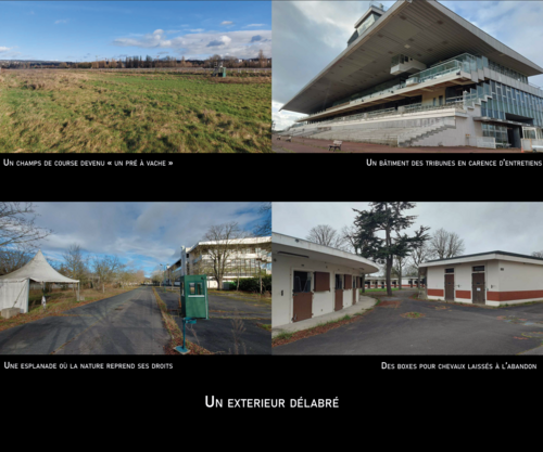 Le complexe de 1973 ayant subit l'évolution des normes et pratiques autours des courses hippiques sans pour autant les avoir suivit, se doit de se réorganiser en profondeur. Cela passe par un réaménagement et des remises aux normes des équipements pour chevaux : un meilleur espace d'accueil pour turfistes et simples visiteurs ; une ouverture certaine vers la jeunesse mansonnienne en ouvrant le champs des possibles autours de la culture à travers l'inclusion d'une "Maison des Jeunes" contiguë au monumentale bâtiment des tribunes.
