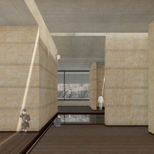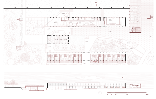 Ce travail s’articule autour d’une réflexion constante sur l’horizontalité et le rapport au sol. En reprenant les principes de terrassement et de muralité du fort, l’objectif est de mettre en place un jeu de descentes au sein même de l’existant, afin de révéler symboliquement ses fondations. Le projet cherche en permanence à instaurer une dualité entre légèreté et massivité.