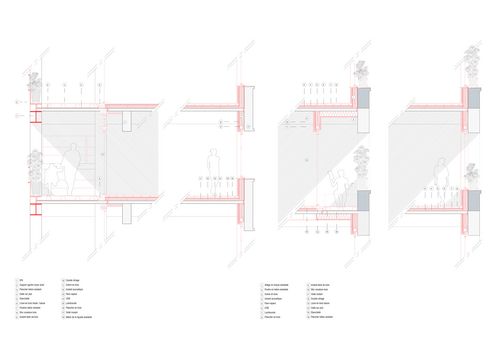 Les rampes, circulation centrale du garage aujourd'hui, sont transformée en rue piétonne menant au toit. Ces dernières permettent à l'espace public d'accéder au toit.