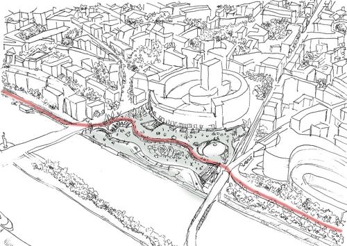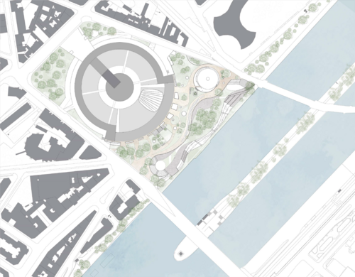 La ville de Paris, est face à de nombreux bouleversements. La parcelle choisie en bord de Seine face à la Maison de la Radio propose un lieu pour la danse et à la continuité de son insertion sur les bords de Seine, notamment du point de vu des flux et pour une réponse écologique : extension d’un lieu, berge plus naturelle et proposition face à la crue.