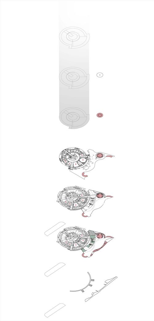 La danse se codifie avec la notation chorégraphique, influençant l’architecture par ses notions de mouvement, d’espace et de temps. Celle-ci permet la réflexion sur la forme du projet et sa déambulation influencée par la maison de la Radio. Le rythme de la danse et de la musique m’on inspiré pour traiter le projet d’architecture, notamment ici sur l’esthétisme, le mode structurel et les séquences que le visiteur vit.