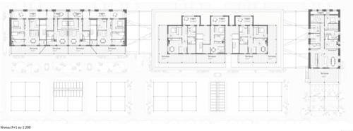 L’architecture valorise des matériaux durables (pierre meulière, bois, liège, laine de bois) et propose des implantations en retrait pour limiter le vis-à-vis tout en créant un front bâti sur l’avenue. Des percées visuelles ouvrent sur des espaces végétalisés. Chaque logement bénéficie d’une terrasse donnant sur le cœur du site et d’une loggia côté nord, assurant confort et mise à distance avec l’avenue.