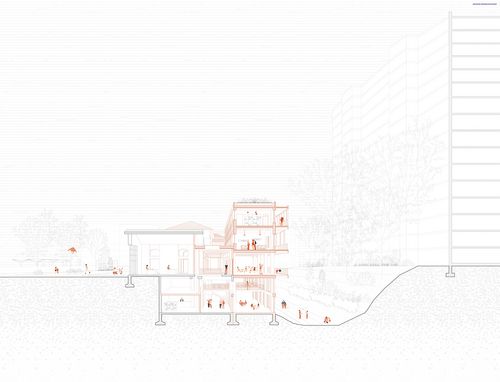 Ce Centre Provisoire d’Hébergement hybride répond à un double défi : offrir un lieu de vie digne, protecteur et émancipateur, et réunifier les composantes du site. Il propose un modèle d’urbanité ouverte, où chaque espace devient outil de transmission et de rencontre.