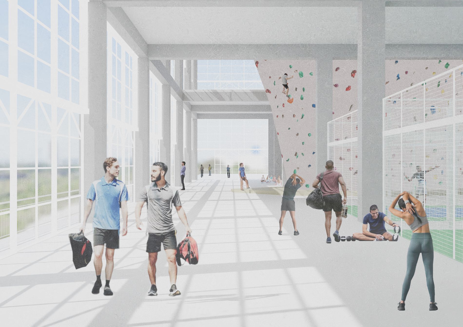 Le projet abrite de nombreux programmes à l’intérieur de sa grande volumétrie. À la manière de la Bigness (Koolhas), le projet déploie des stratégies pour organiser à la fois son interdépendance avec le tissu urbain, requalifiant ainsi le délaissé dans lequel il s’insère, mais aussi son indépendance en se qualifiant comme un objet de la ceinture de Paris.