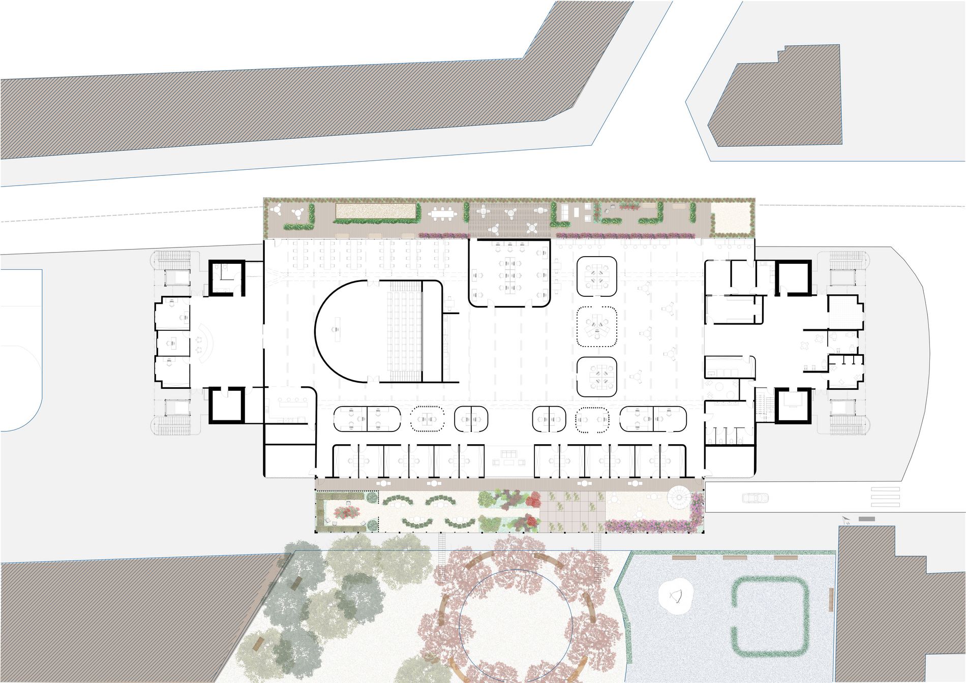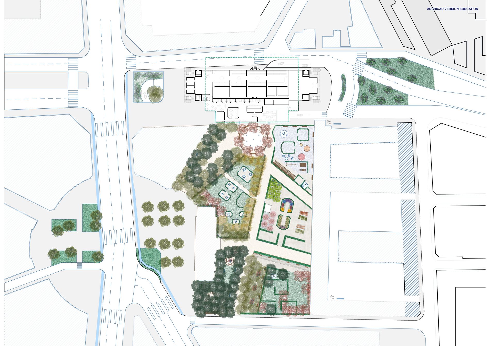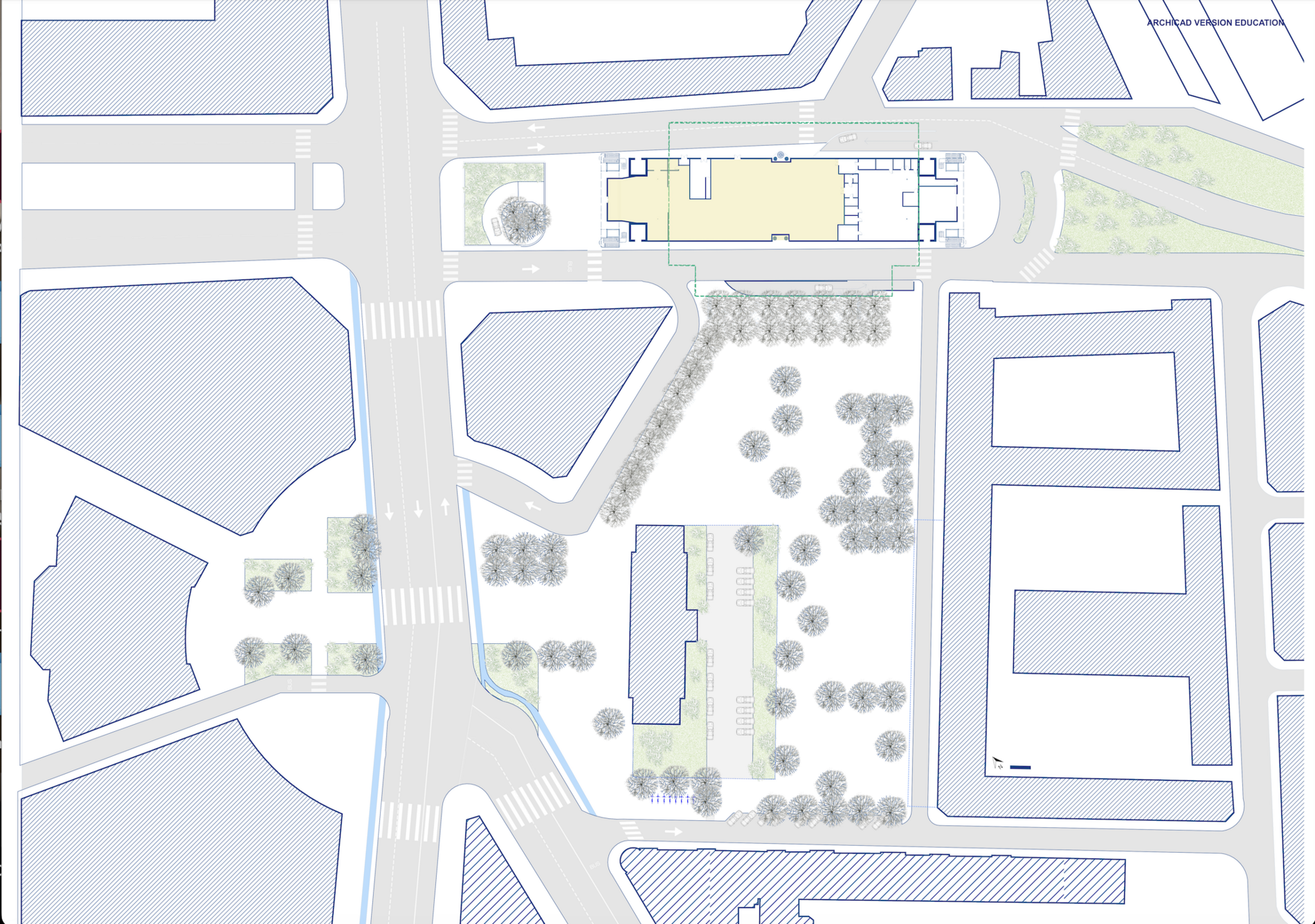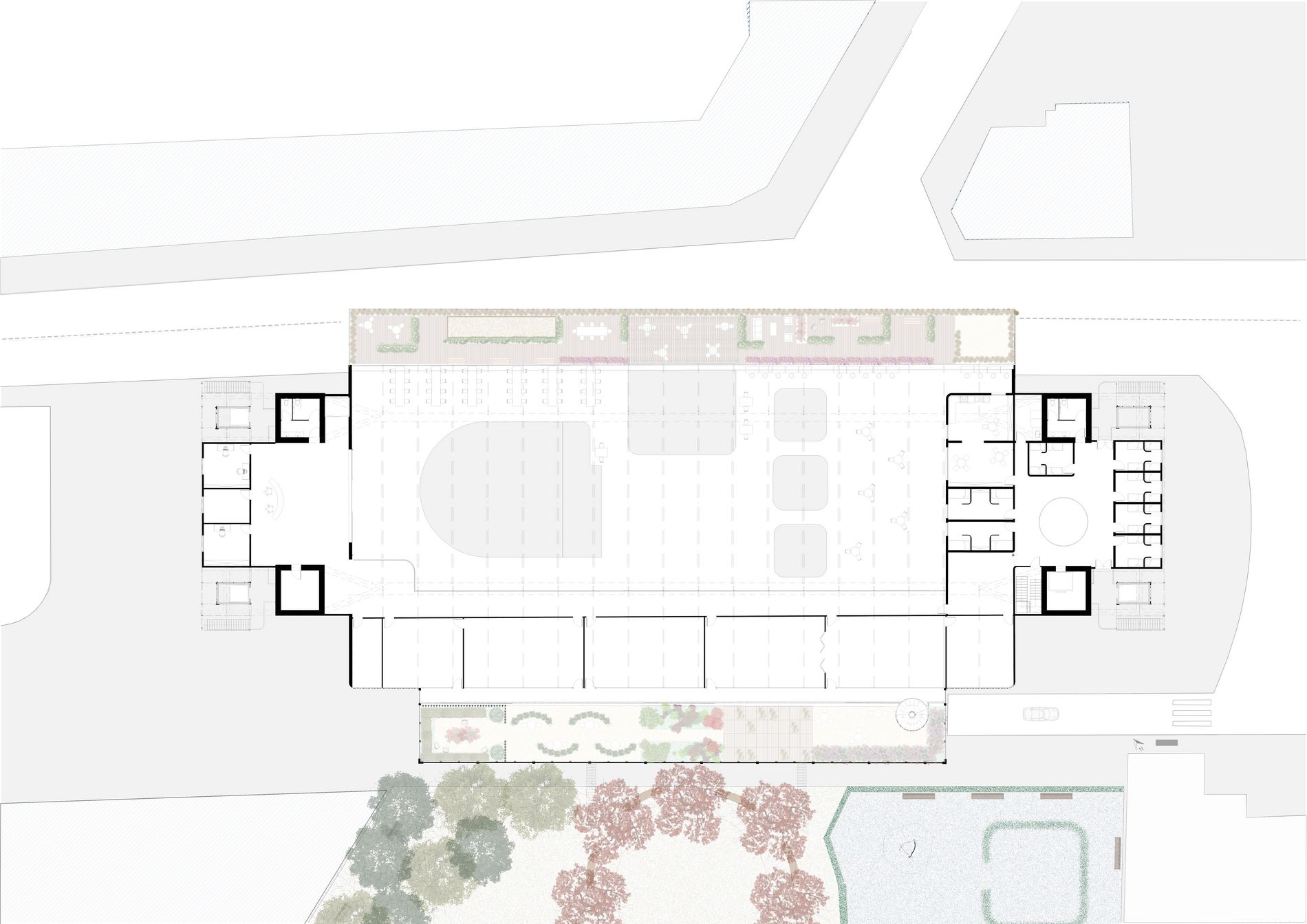 Mon projet de fin d’études porte sur la réhabilitation de la patinoire de Saint-Ouen et le réaménagement de la place de la mairie, dans une démarche inclusive visant à intégrer les personnes atteintes de TSA. Ce trouble neurodéveloppemental, défini comme un spectre, engendre des altérations des interactions sociales et des surcharges sensorielles souvent amplifiées par l’environnement. Aujourd’hui, l’inclusion des personnes TSA reste marginale, d’où l’importance de concevoir des espaces adaptés. Située entre l’ouest gentrifié et l’est populaire, la patinoire, conçue par Paul Chemetov en 1979, symbolise la rupture urbaine de la ville. Mon projet repose sur trois axes : inclusion sensorielle, revalorisation urbaine et transformation en un lieu multifonctionnel accueillant un supermarché, un restaurant, un coworking et des ateliers. Inspiré des mécanismes de défense de l’étoile de mer, j’ai créé un modèle génératif qui m’a permis d’identifier les zones de sur et de sous-stimulation pour adapter chaque espace. Le jardin, la serre et les espaces intérieurs offrent ainsi des ambiances variées, contenues ou ouvertes, répondant aux besoins des profils hypersensibles et hyposensibles. Ce projet illustre comment l’architecture peut concilier patrimoine, inclusion et innovation.