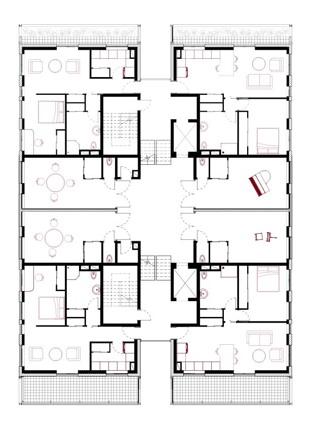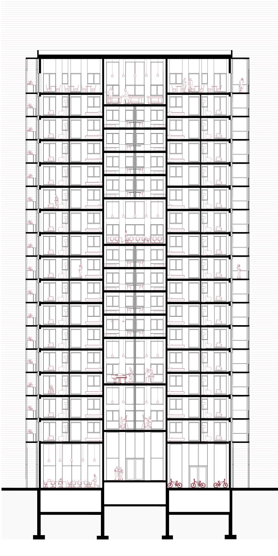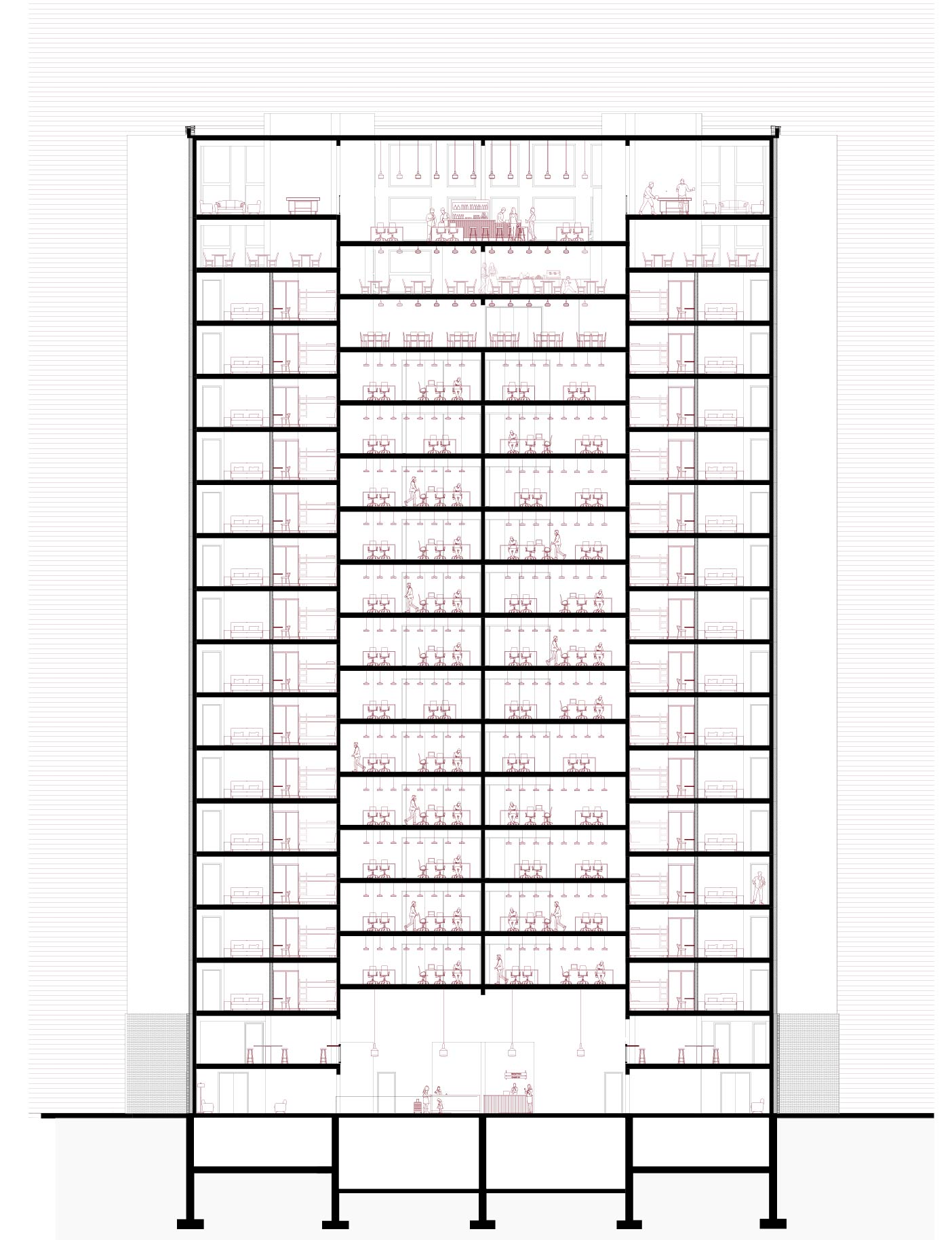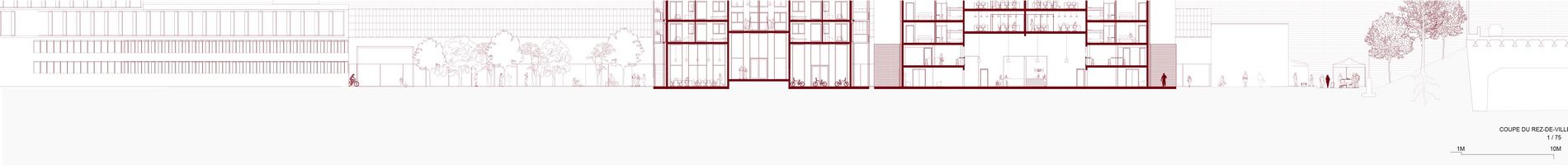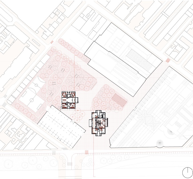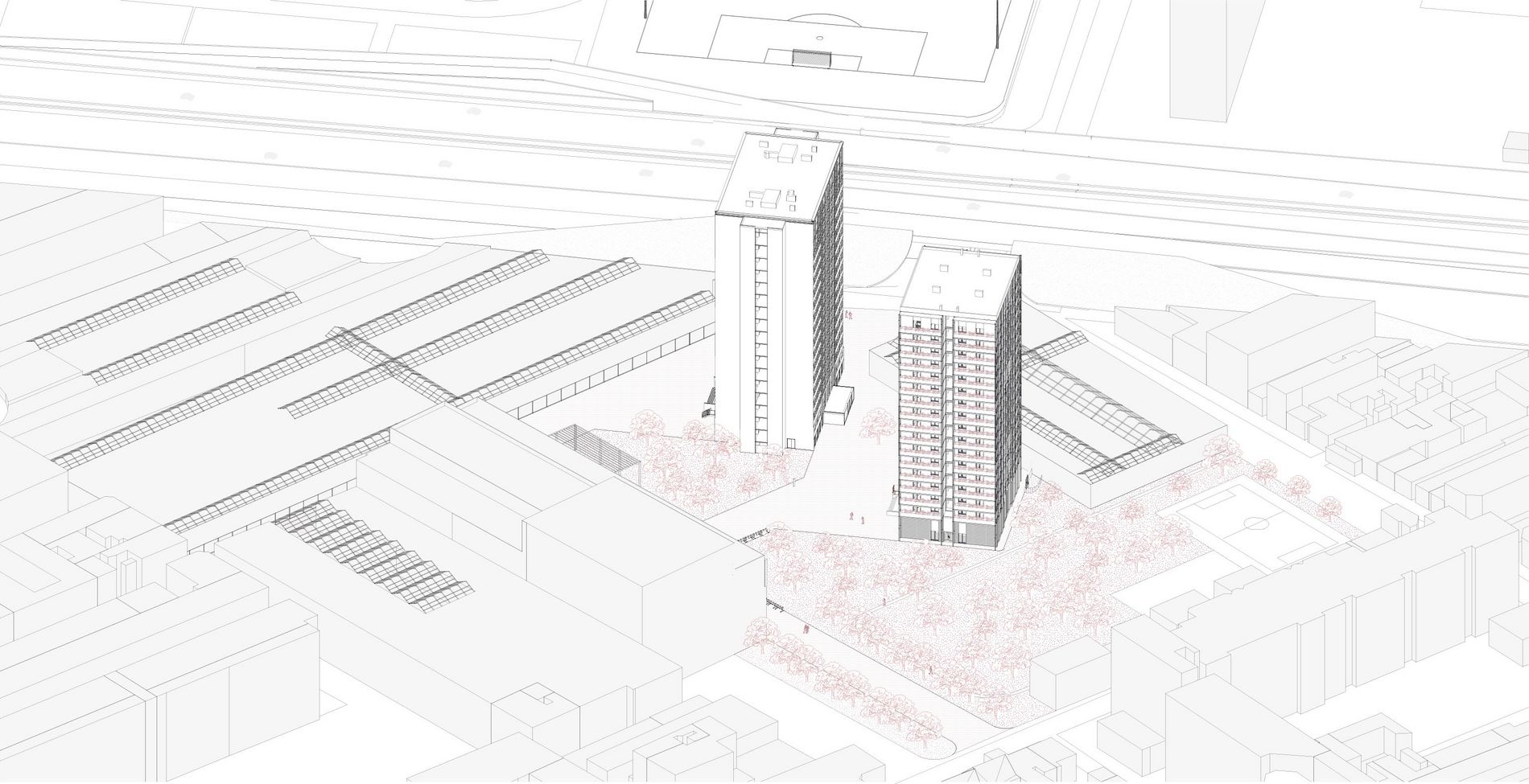 Situé aux portes de Paris, le site des Tours des Boute-en-Train à Saint-Ouen incarne à la fois l’héritage des grands ensembles des années 1960 et les défis actuels de la transformation urbaine. Conçues comme réponses modernistes à la crise du logement, les tours ont progressivement été isolées par un tissu urbain fragmenté et des infrastructures lourdes, accentuant leur dévalorisation. Ce projet de fin d’études, réalisé en binôme, propose une stratégie de réhabilitation fondée sur trois piliers : la reconnexion au territoire, la requalification des usages et la durabilité architecturale. L’ambition est de révéler le potentiel de ce patrimoine du quotidien en l’inscrivant dans une logique de tissage urbain, de mixité programmatique et d’ouverture. La requalification du site passe par la création de nouvelles continuités piétonnes reliant les marchés aux puces voisins, la transformation des friches en parcs urbains et l’introduction d’espaces conviviaux et paysagers. Enfin, la réhabilitation des tours leur redonne attractivité et valeur d’usage, en créant un pôle vivant, connecté et durable au cœur de Saint-Ouen.
