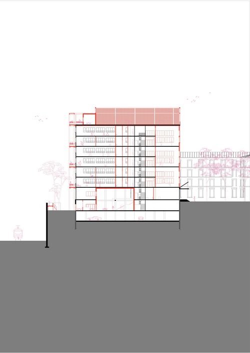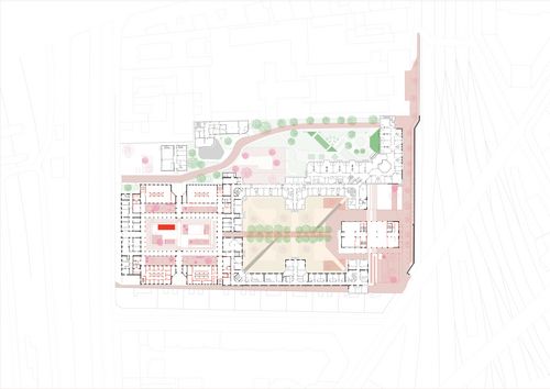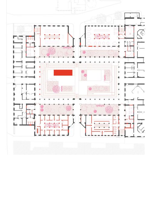 Notre transformation cherche à respecter l’existant qui nous est cher, à en révéler les facettes. Nous y avons décelé, par notre familiarisation avec lui, des valeurs qui forment des opportunités de projet. Notre intervention s’intéresse aux traces historiques et aux valeurs d’usage, ainsi qu’aux multiples espaces extérieurs, véritables biens précieux. Elle se tourne vers les délaissés du site, qui présentent des potentialités de projet majeurs, et tend vers leur requalification, pour les ouvrir à la ville et les offrir aux habitants. Leurs programmes sont élaborés au service de l’individu et de son bien-être, en perpétuant la notion de soin qui habite les lieux. Ce bien-être passe par le corps, comme par l’esprit. Nous cherchons à le renforcer à la fois à travers le sport, le repos et l’échange avec le vivant, humain et non-humain qui, dans un contexte global de dérèglement climatique, sont tout autant affectés.