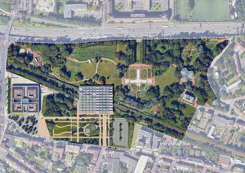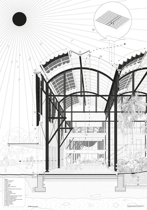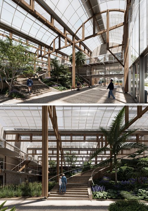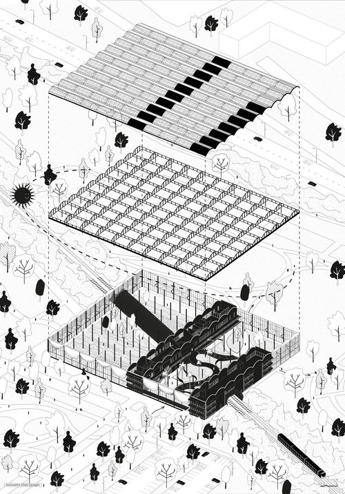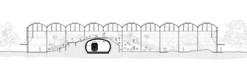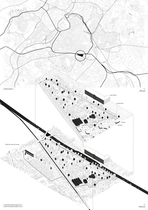 Le projet de revalorisation prend donc la forme d'un désenclavement par un bâtiment serre/ traversant/ machine/ouvrant le parc vers le Sud.