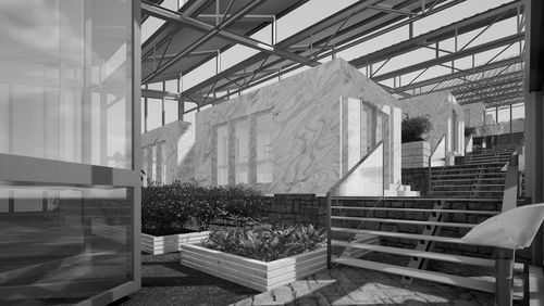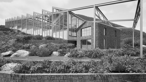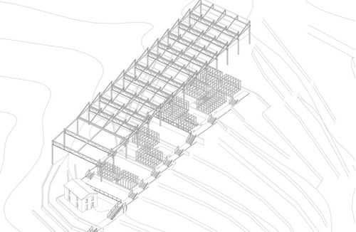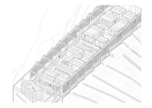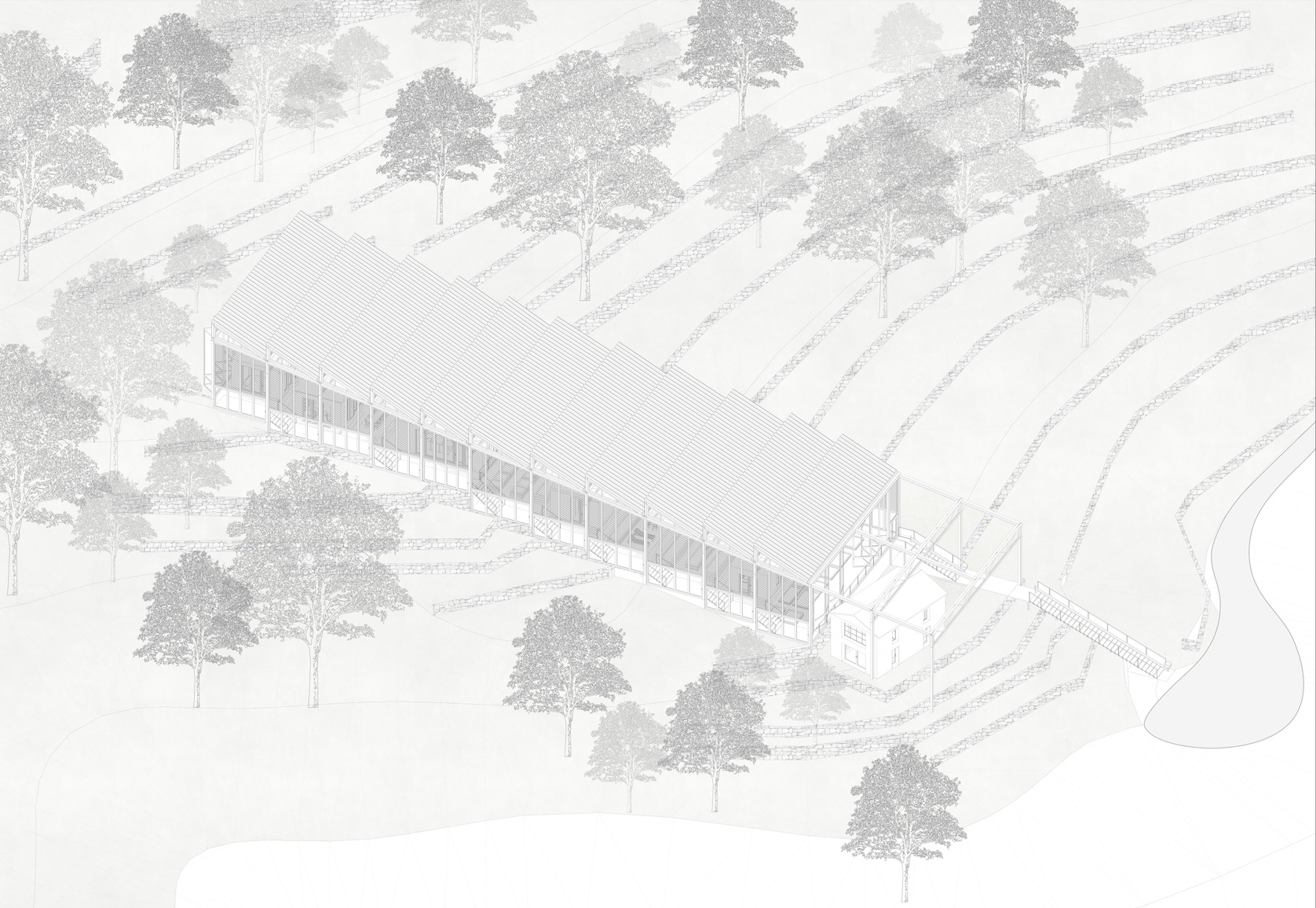 Le projet associe espaces domestiques et espaces productifs, dans une approche qui valorise l’identité du site tout en répondant à de nouveaux usages. Il refuse toute modification lourde du terrain et privilégie une implantation légère et réversible. Une grande serre en acier agit comme enveloppe protectrice et interface climatique, filtrant lumière, vent et variations saisonnières.