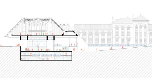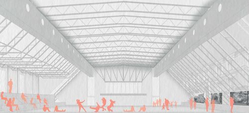La patinoire de Saint-Ouen de Paul Chemetov est un ouvrage monumental et marquant de cette ville. Toutefois, la situation de ce bâtiment l’isole du reste de l’espace public. De plus, le parking associé reste peu visible et induit les mêmes défauts d’accessibilité. En découle un usage faible malgré des volumes à fort potentiel. Ainsi, l’intention est d’ancrer la patinoire au sol pour entamer une reconversion de ces espaces.