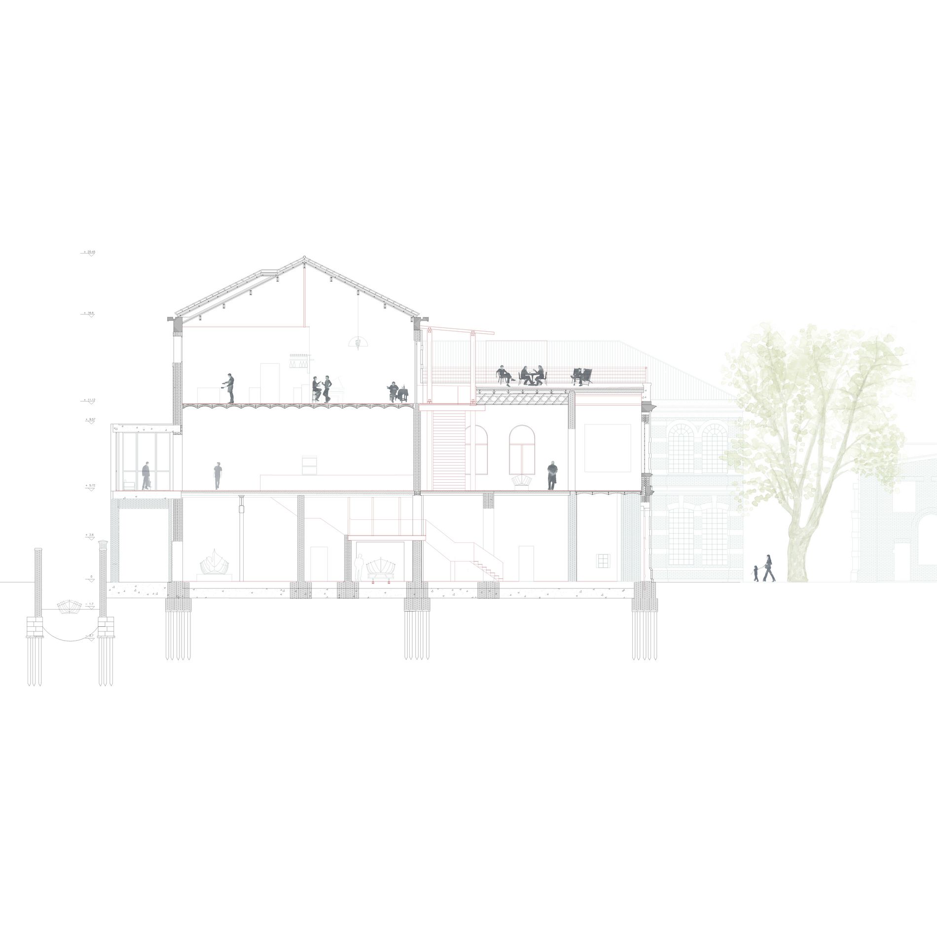 L’intervention s’articule autour d’un parcours paysager reliant différentes zones du sestiere de Cannaregio, tout en réactivant les bâtiments industriels par une programmation ancrée dans des savoir-faire traditionnels vénitiens. L’ambition est de créer un lieu dédié à la culture des embarcations vénitiennes traditionnelles en bois, en réunissant un chantier naval, des espaces associatifs, des ateliers d’artisanat, une salle d’exposition et un bar restaurant au sein des bâtiments.