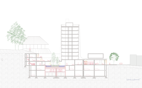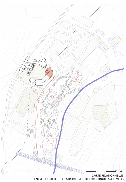 Le projet s’inscrit dans la réflexion du PFE « Prendre soin / Trans-former l’existant » menée à l’ENSA Paris-Val de Seine. Il concerne la reconversion du site de la Caisse des Dépôts à Arcueil, un ensemble bâti hétérogène marqué par des temporalités successives. L’enjeu n’est pas la tabula rasa mais la réactivation de ce patrimoine ordinaire par une stratégie de continuité et de transformation. Le travail s’appuie sur la lecture fine des qualités et pathologies du lieu – accessibilité, topographie, paysages, structures, traces effacées comme l’ancienne piscine – pour révéler des potentiels enfouis. Le projet propose une nouvelle circulation traversante, reliant la ville et le cœur du site, et introduit un programme de soins par l’eau (balnéothérapie) qui dialogue avec l’histoire et résonne avec les besoins contemporains. La lumière, les patios, les matières et les qualités acoustiques deviennent des vecteurs d’ambiance, afin d’inventer une architecture à la fois sensible, durable et hospitalière.