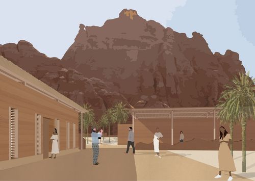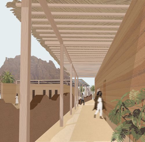 AlUla, au nord-ouest de l’Arabie Saoudite, est un territoire marqué par son patrimoine, son paysage et son rôle historique de carrefour de civilisations. Aujourd’hui au cœur d’un grand projet de développement culturel et touristique, elle confronte deux réalités : la vieille ville, authentique et patrimoniale, et la ville nouvelle, moderne et étendue. Le site choisi pour ce projet de fin d’études, situé entre ces deux pôles, conserve des pratiques agricoles, des vestiges et un puits encore actif. Il est envisagé comme un espace de transition et de rencontre.