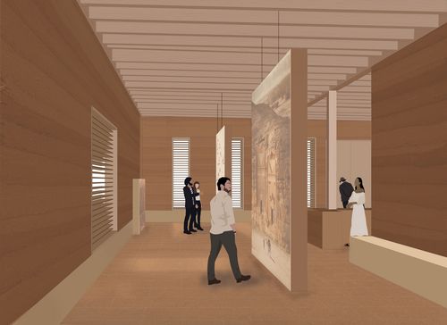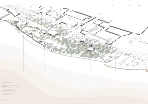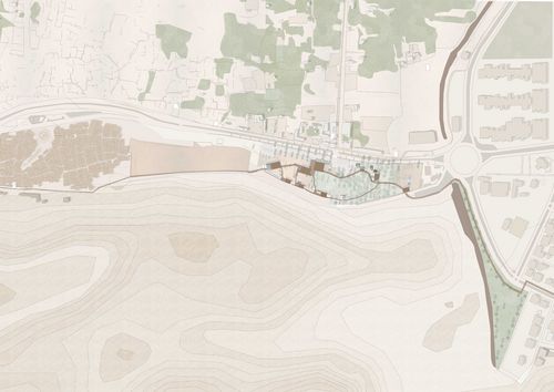 L’objectif est de créer un lieu de destination capable de relier la vieille et la nouvelle ville, à travers une intervention urbaine comprenant accueil, commerces, restauration, parking et un parcours piéton. Ce chemin, pensé comme une promenade, longe le wadi, traverse un parc urbain et s’appuie sur l’oasis et les traces bâties existantes, afin de renforcer la continuité entre paysage, mémoire et ville contemporaine.
