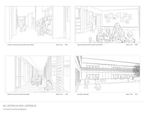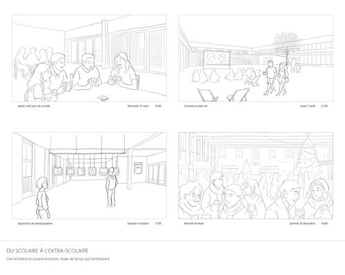 Ainsi, le projet porte une attention particulière à l’articulation du programme, à la fluidité des circulations et à la lisibilité des accès. Il propose également une diversité d’espaces de différentes échelles, permettant d’accueillir les situations d’apprentissage et de rencontre variées qui animeront chaque jour ce lieu.