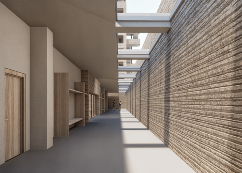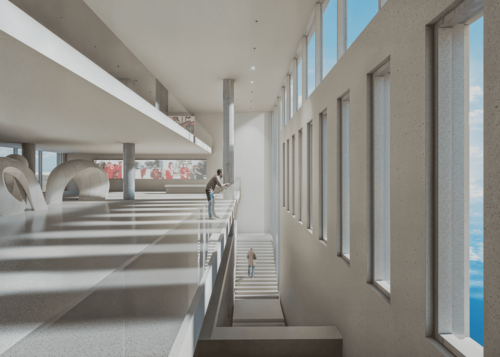 À Beyrouth, l’explosion du port en 2020 a laissé une cicatrice urbaine et mémorielle dans une ville déjà fragmentée et privée d’accès à son littoral. Ce projet, “Unir pour prévenir”, propose de transformer ce territoire clos en espace public ouvert, reliant la ville à la mer. Le programme, un Centre National des Secouristes, offre formation, entrainement, hébergement, caserne de pompiers, secours maritime et secours médical, et espaces culturels de la prévention. Par son implantation sur une des cinq jetées du port, le projet s'ouvre vers la ruine de l'explosion, le silo, symbolisant la mémoire et la sacralisation éternelle de ce lieu. L’architecture s’organise ainsi autour d’une équerre tournée vers les silos, d’une tour de manœuvre comme signal de veille, et d’un centre culturel en pont qui intériorise l’espace autour d’une cour, symbole de protection et d’appartenance spatiale. Les matériaux bruts expriment les cicatrices du site, tandis que le parc public ouvre la ville sur le littoral. Ainsi, le projet cadre l’horizon, ouvre la ville sur son littoral, et redonne une place à la mémoire et aux acteurs de la prévention. L’intention est de faire de ce territoire meurtri un espace de renaissance collective : un cadre fonctionnel, mais aussi un geste symbolique reliant mémoire, prévention et communauté.
