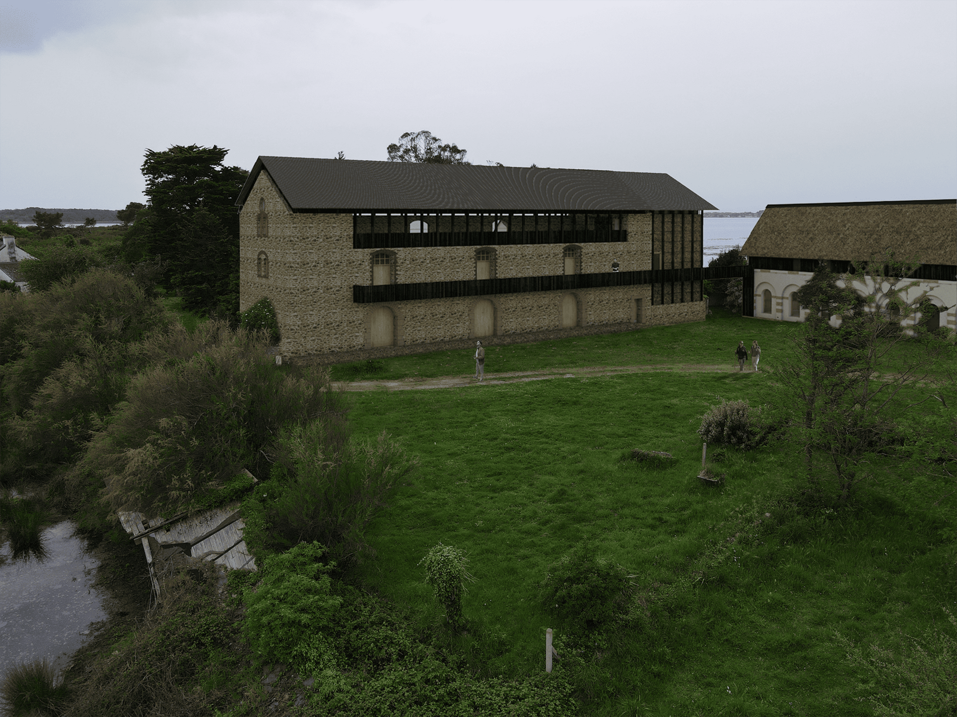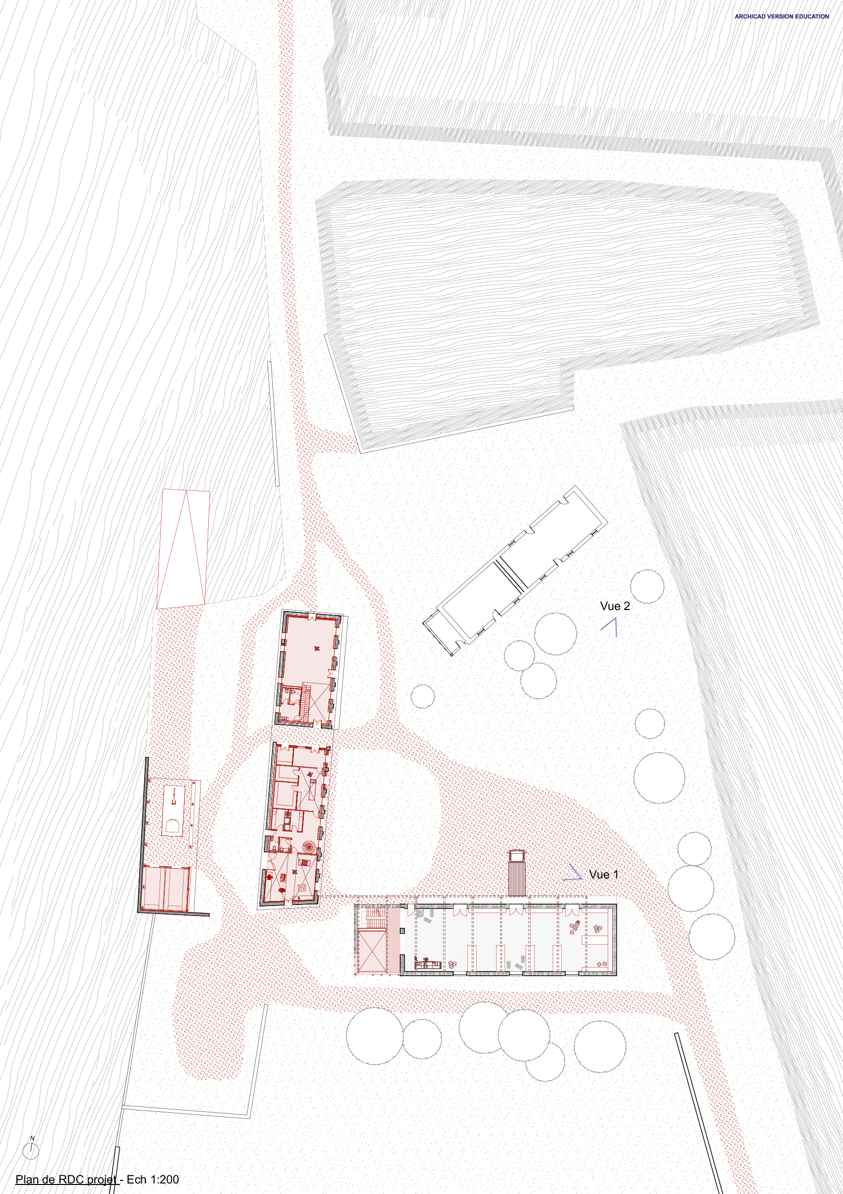 Le bâtiment de transformation accueille une extention et garde son statut productif. La minoterie est conservée et met en valeur son mur en arches. L’ensemble affirme la possibilité d’un nouveau lien entre ressources naturelles, paysage et construction locale.