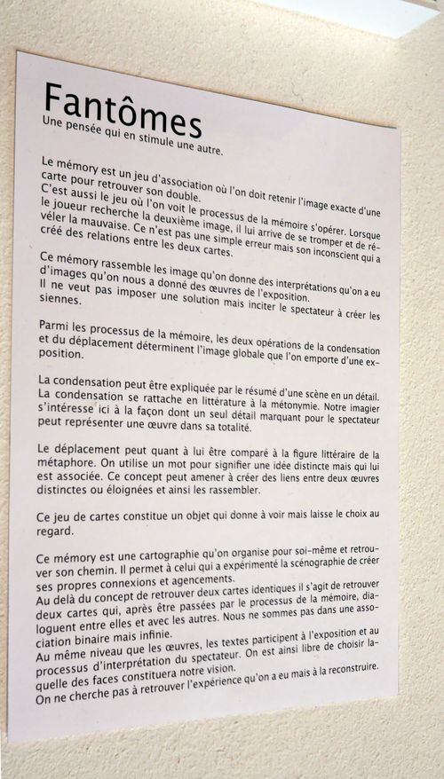 Mettre en abîme le thème de l’exposition concernant les métaphores qui décrivent la structure de la mémoire à la manière d’une architecture ; et proposer un élément de scénographie qui intervient sur la mémoire que l’on garde de l’exposition, sur la manière dont le souvenir se structure après coup.