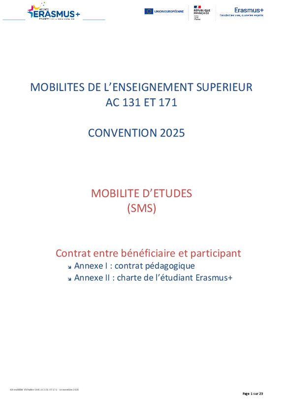 - Enfin il doit remplir, auprès du bureau de la mobilité étudiante internationale de l'ENSA Paris-Val de Seine, un contrat de mobilité Erasmus + dans lequel il s'engage à respecter les conditions du dispositif.