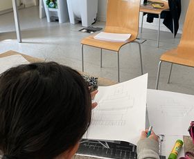 La découverte du fonctionnement d’une école d’architecture s’est articulée en deux séances. La première a pris la forme d’une visite des espaces de notre établissement et de son histoire : comment une ancienne usine, ruines contemporaines du passé industriel du quartier, a-t-elle pu devenir un lieu d’enseignement ? Les jeunes élèves ont déambulé à travers les espaces afin de comprendre le fonctionnement d’une école d’architecture.