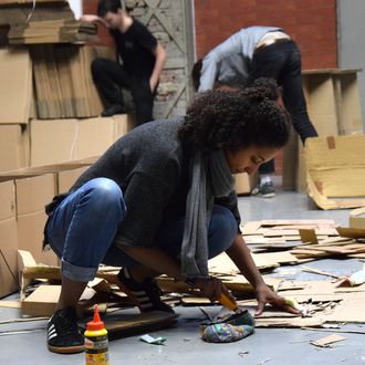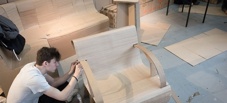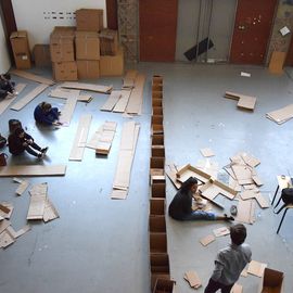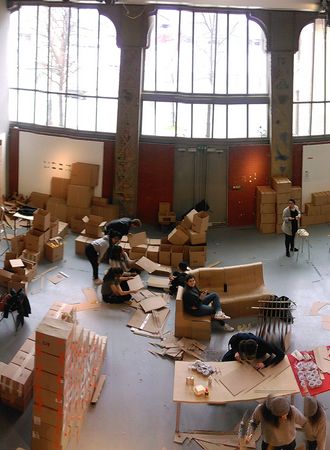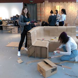 Les étudiants du groupe 1 en L1/S1 travaillent jusqu’au 29 janvier en salle d’exposition sur une réalisation totalement en carton. Dans un premier temps, ils ont effectué des recherches par groupes de 5-6 personnes sur des maquettes à l'échelle 1/5e.